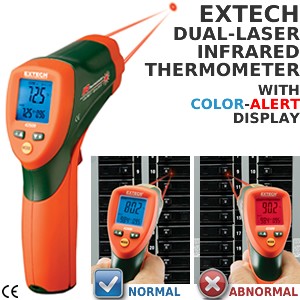 İnfrared termometre serisinde sıra dışı bir yenilik sergileyen Extech VIR50, üzerindeki kamera sayesinde ölçüm yaptığınız yüzeyi görmenizi sağlıyor ve bir çok bilgi ekrandan size aktarılıyor. Ölçülen yüzeyin görüntüsü, kamera ya da JPEG formatında kaydedilebiliyor ve tüm sıcaklık verileri, min - max, ortalama değer, yüzeyin emisivite değeri, ortam nem ve sıcaklık, çiğlenme sıcaklığı vb. tüm parametreleri ekranda sunuyor. Termal kameradan farklı olarak, yüzeyin gerçek görüntüsü ile noktasal bazda sıcaklık değişimilerini anailiz etme imkanı sunuyor. Dolayısıyla termal kameradan çok daha ekonomik fiyata, yüzey ile ilgili sıcaklık analizi yapmanıza olanak tanıyor.